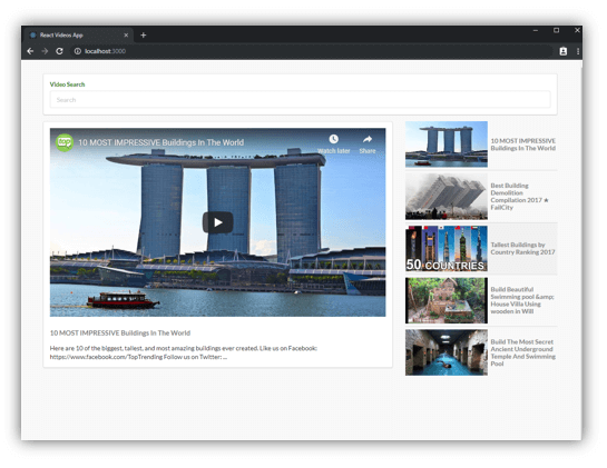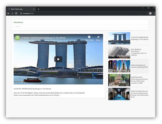 1. เมื่อเว็บไซต์ถูกเปิดขึ้นมาครั้งแรก จะแสดงรายการวีดีโอตามคำค้น ซึ่งเป็นค่า default ที่ set ไว้ในระบบ จากตัวอย่างคือคำว่า “Buildings”