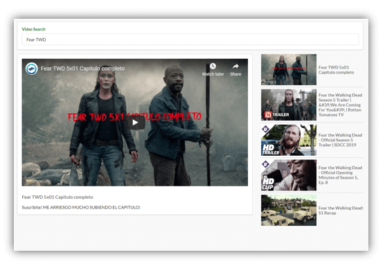 ส่วนนี้ใช้แสดงรายการวีดีโอ จำนวน 5 รายการ โดยการแสดงผลลัพธ์จะสัมพันธ์กับคำที่เราใช้ค้นหา เมื่อวีดีโอในส่วนนี้ถูกคลิก ก็จะไปแสดงผลที่ส่วนที่ 3