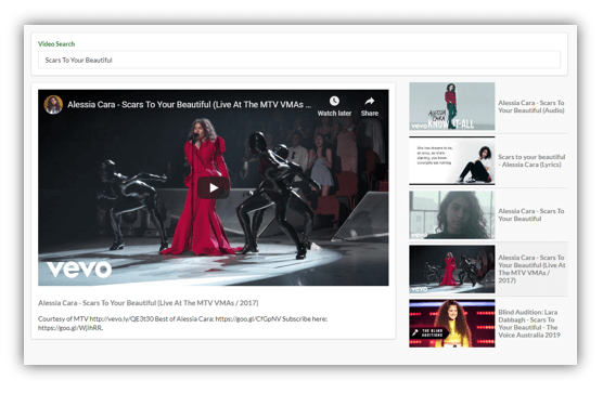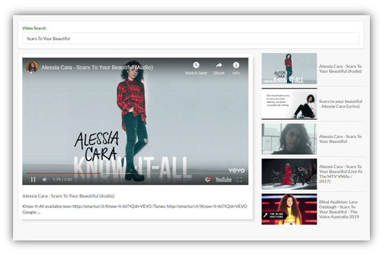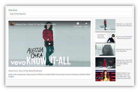 2. กรอกคำค้นหาวีดีโอตามต้องการ เช่น “Scars To Your Beautiful” และคลิกที่ปุ่ม Enter จะได้ผลลัพธ์ดังภาพด้านล่าง