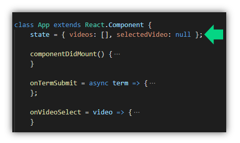 และ selectedVideo เป็นรายการวีดีโอที่ถูกเลือกมาแสดงผลที่ส่วนของ VideoDetail เรากำหนดค่าเริ่มต้นให้เป็น null