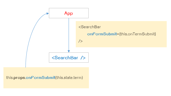 App: เอ้ย SearchBar ฉันส่ง props onFormSubmit ไปให้นายนะ ตอนเรียกใช้งานมัน ช่วยส่งส่งค่า keyword ที่นายรับมาจาก user ให้ฉันด้วยล่ะ