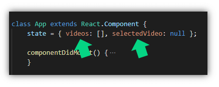 และที่ไฟล์ App.js เราเก็บ state ที่เป็น videos และ selectedVideo เอาไว้